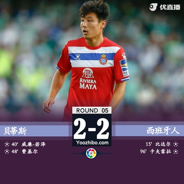 360直播9月20日讯 北京时间9月20日0:30,2021-22赛季西班牙足球甲级联赛第5轮,皇家贝蒂斯主场迎战西班牙人的比赛。上半场比达尔破门,威廉若泽扳平,上半场补时最后一刻费基尔破门反超比分。下半场西班牙人多打一人情况下最后卡夫雷拉绝平,最终皇家贝蒂斯主场2-2西班牙人。