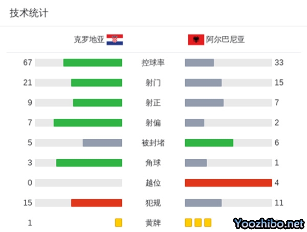 全场比赛结束,克罗地亚2-2阿尔巴尼亚。