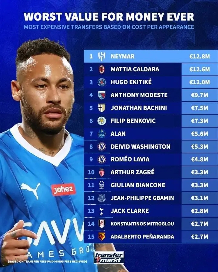 1-内马尔(新月) - 1280万欧元/场