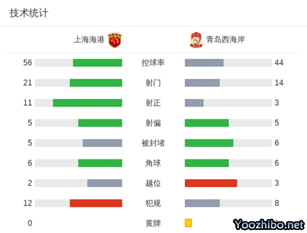 第52分钟,海港扩大比分!李帅左路下底横传门前古斯塔沃后脚跟回做奥斯卡劲射破门,海港2-0西海岸。
