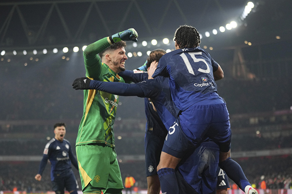 360直播讯在北京时间1月13日进行的足总杯第3轮一场焦点战中,曼联在客场超过60分钟少打1人情况下顽强将阿森纳拖到点球大战,并且最终总比分6-4淘汰对手,晋级32强。